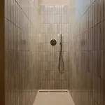 Lägenheten har ett badrum med badlakan och handdukar.